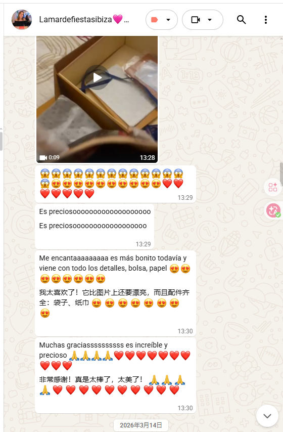 Embalaje exclusivo y detallado para cada artículo.Incluye accesorios completos: caja original, certificado de autenticidad, funda protectora anti-polvo, película anti-arañazos, lazo elegante y obsequio gratuito.Cada pieza lista para regalar, con máxima seguridad y elegancia.